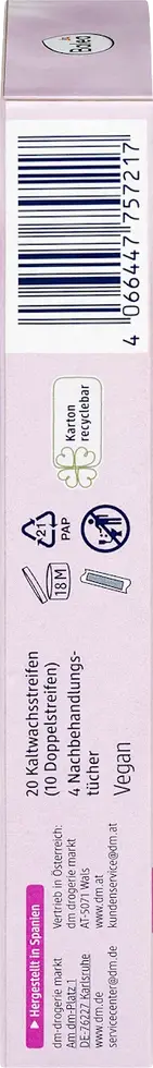The Balea Cold Wax Strips for the face effectively and easily remove facial hair, delivering long-lasting results. The strips leave behind a pleasant wild berry scent. The pack includes care wipes for post-treatment, which soothe the skin and help remove any residual wax.